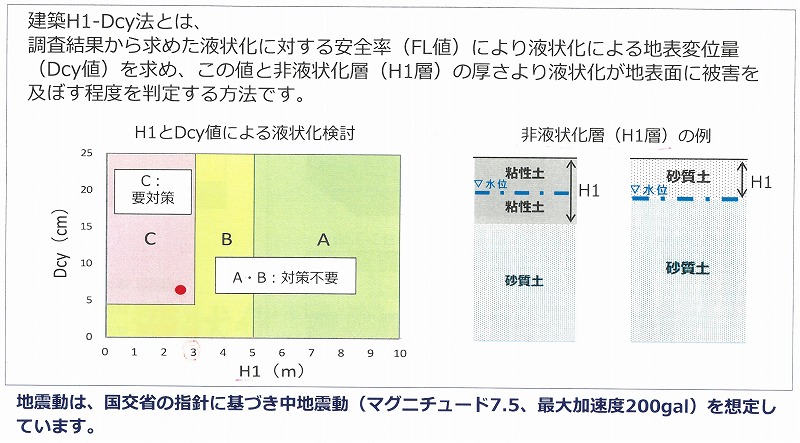 調査データをもとに、国の基準に基づいた「液状化判定式」でリスクを数値化してくれるそうです。