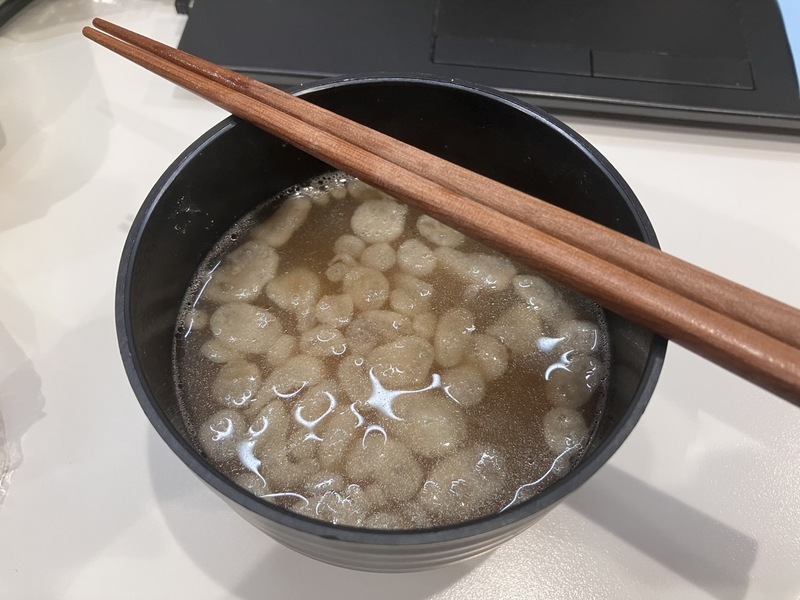 みそ汁にしてみると丁度よい塩梅でした。(プロテインを加えて混ぜたのもあって…)