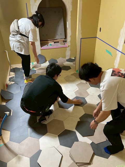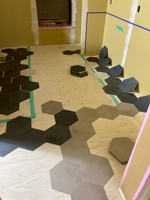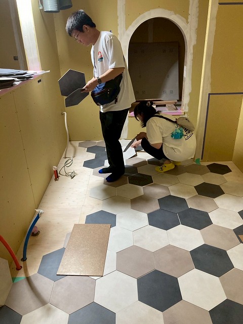 ひとまず適当に並べてから配色を色々と検討しながら職人さんとも一緒に思案しながら、
