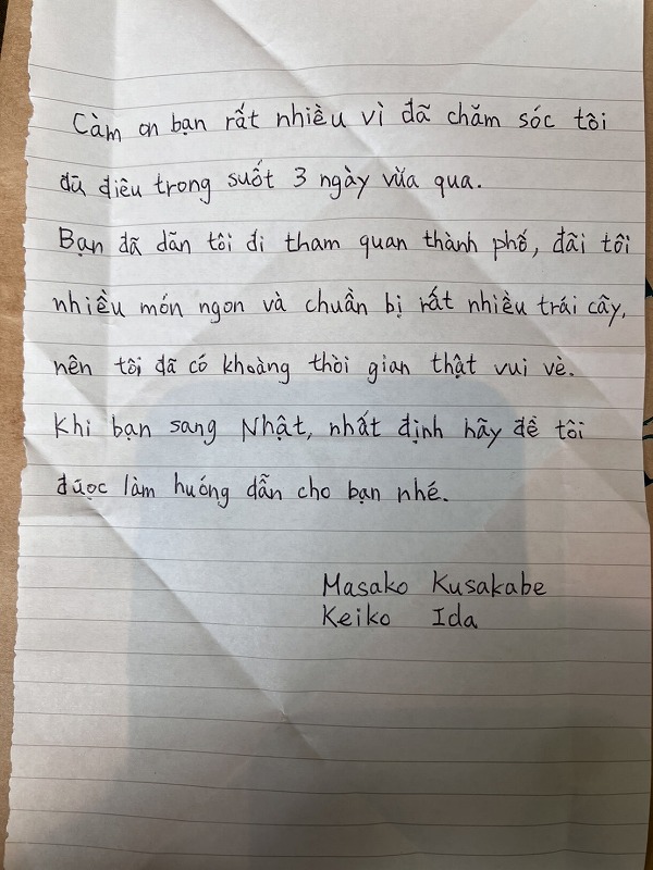 本当に、ご家族にお世話になったので、ベトナム語で感謝の手紙を書いて渡してきました。