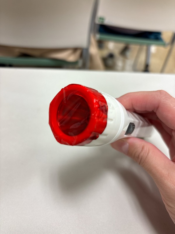 入館すると、まず渡されたのが赤いセロファンを貼った懐中電灯🔦