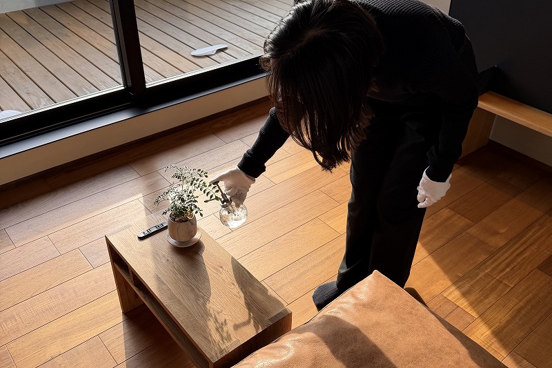 ② 完成時の測定(性能確認) 2回目は、お引き渡し直前に行います。 工事中に突き詰めた気密性能が、クロスや設備が入った最終段階でもしっかりと出ているか? お客様にお約束した性能が担保されているかを証明するための「答え合わせ」です。