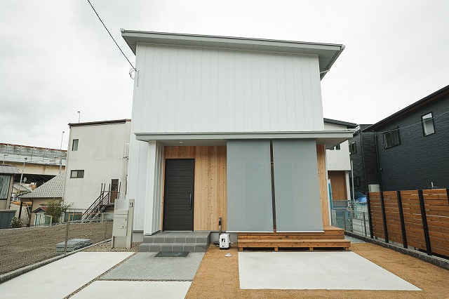 いろはの宿泊用のモデルハウスは西側に掃出し窓があります。(西接道の為)