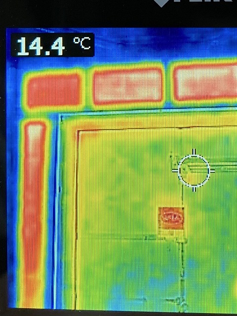 外部の温度が内部へ伝わっているのが良くわかります。外の温度のほうが高いのでその温度が室内側へ伝わっていることがこの写真から分かります。