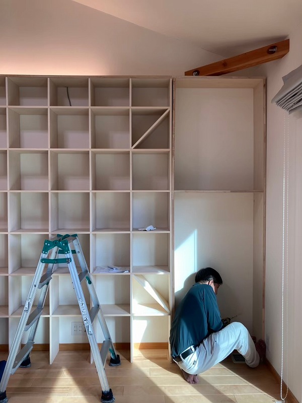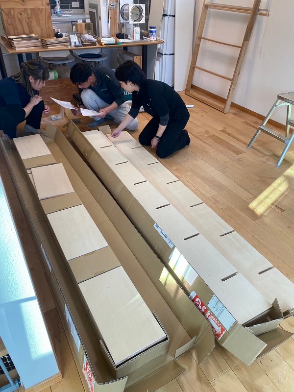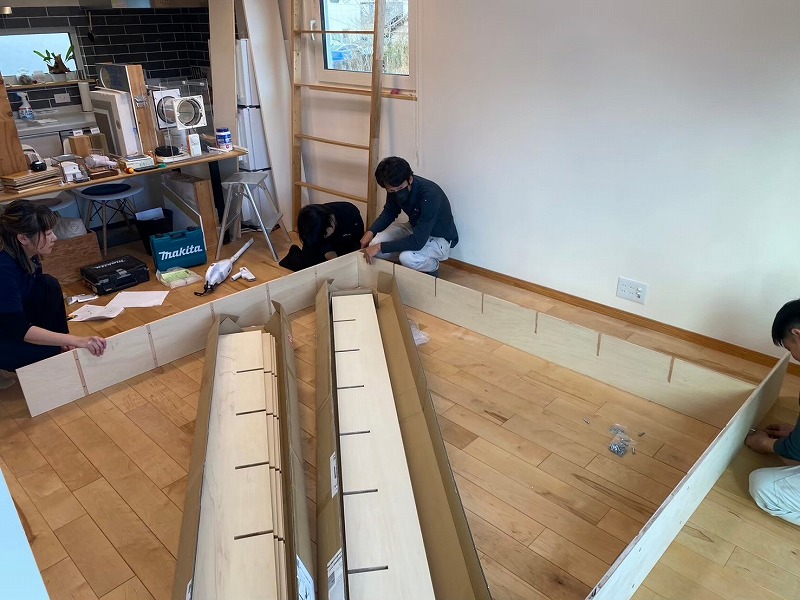 1カ月程前に事務所の打ち合わせスペースの内装を、新しくしようと計画をしており、マルゲリータという本棚を組み立てました。