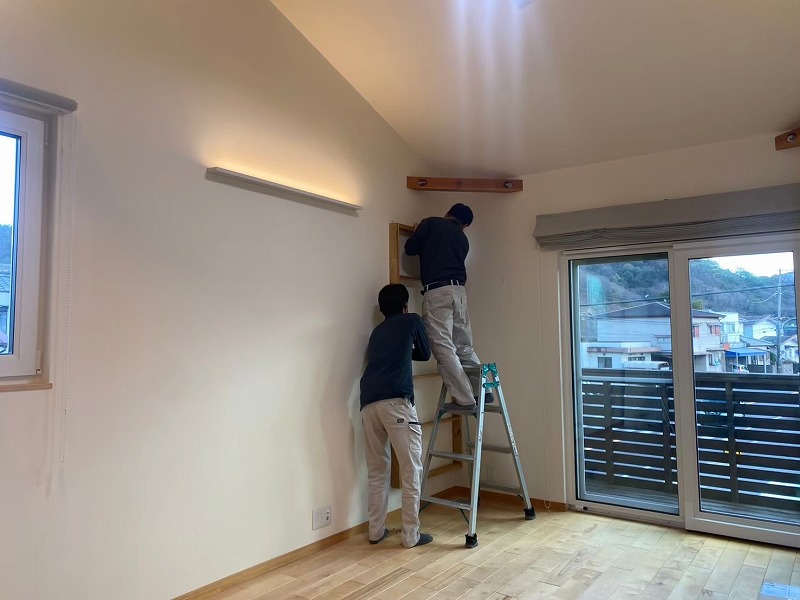まず、以前取り付けていた本棚・間接照明を外しました。