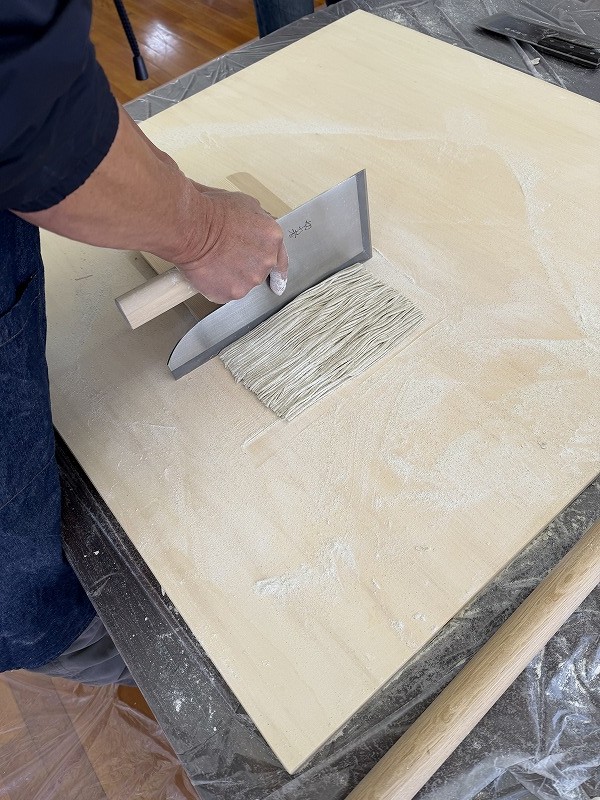 生地をこね、伸ばし、包丁で一本一本切っていく作業は、
