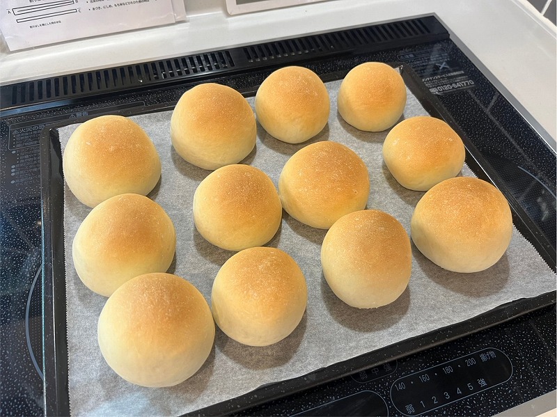 生地はホームベーカリーに作ってもらい、丸めてオーブンで焼く工程を自分たちで行いました。