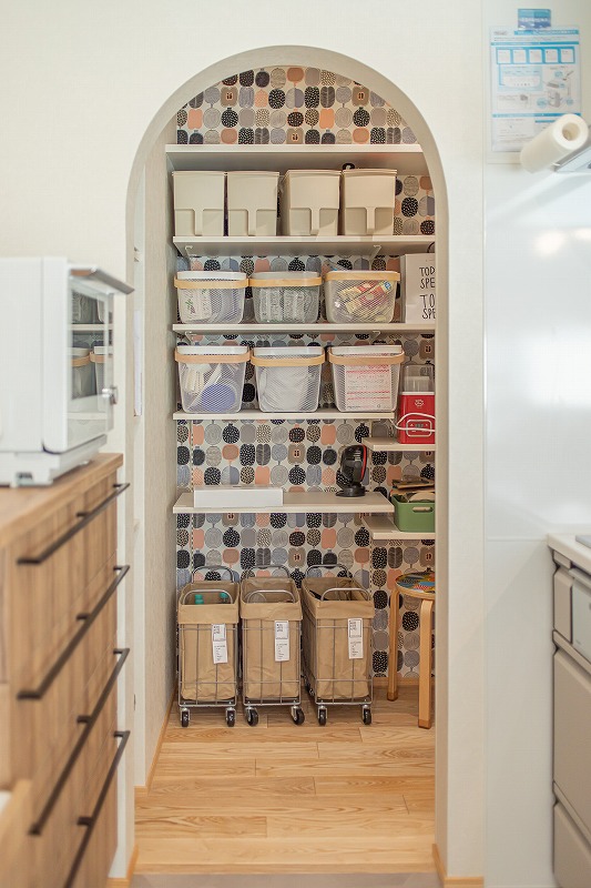 収納スペースは普段あまり人の目に触れない場所ですが、このようにお気に入りのクロスを取り入れることで、毎日の家事も少し楽しい気分になります!