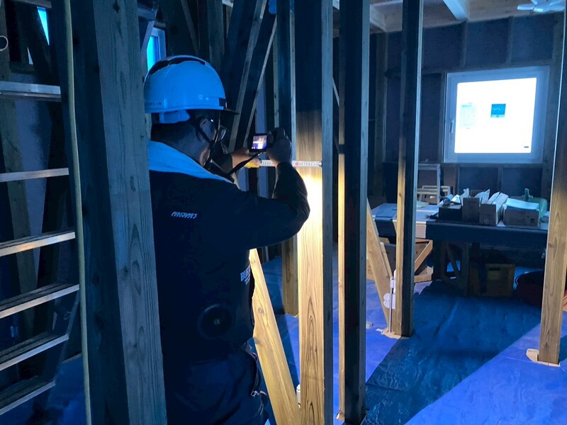また、屋根の検査が終わると、建物の中も暗闇の中でチェックされていました。