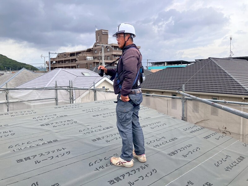 屋根工事の中で、特に重要なのが【防水シート(ルーフィング)】の施工です。