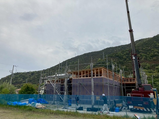 先々週から天気予報とにらめっこが続いていましたが、先週なんとか雨に降られることなく無事上棟することができました。