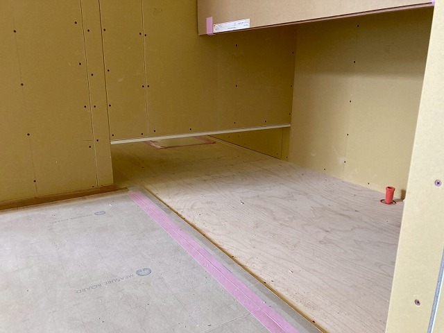 内装屋さんが今日は入っておられて、ボードのビスやつなぎ目にパテを埋める作業もされていました。