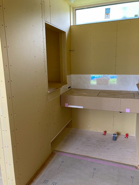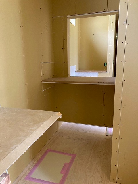 9月お引渡し予定の赤穂の現場が大工工事が終わり、内装工事に進むタイミングでお客様と造作部分の確認をさせて頂きました。