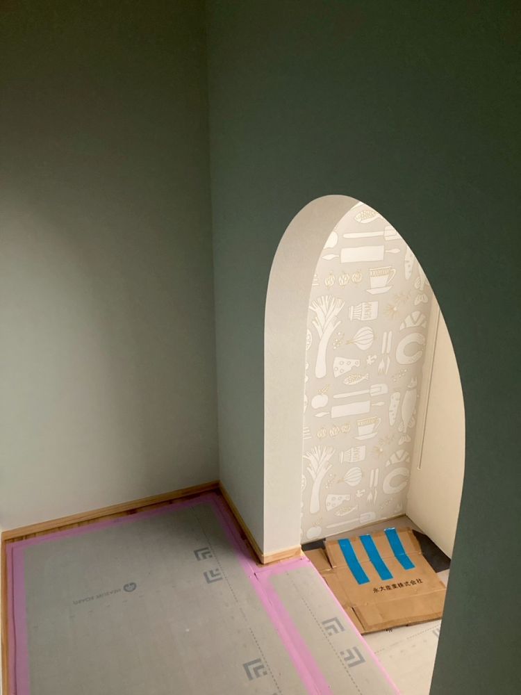 一般的にはパントリーがくる位置ですが、奥様の「ドラえもんの押し入れみたいな、一人でくつろげる“おこもり空間”がほしい」というご要望から生まれました。