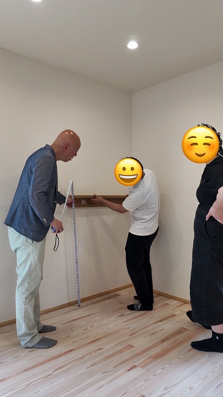 最後に取り付け予定の家具やポスト、鏡の位置を決めました。