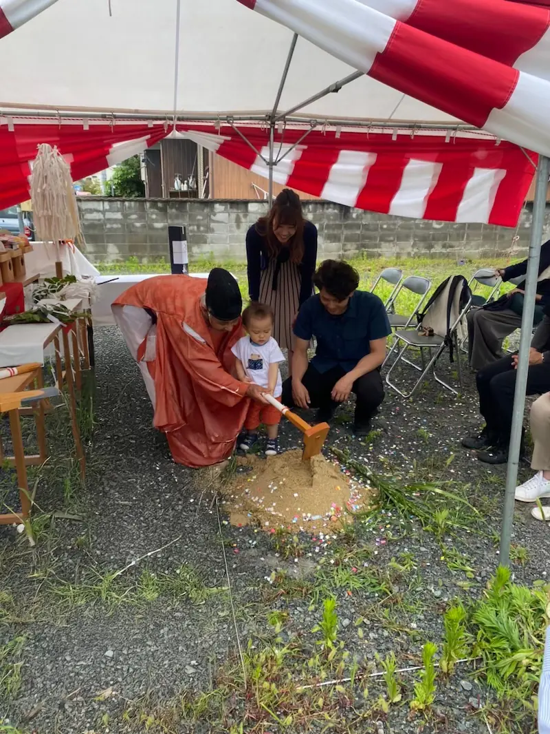 工事の安全を願い、地鎮祭を執り行います。神主さんをお招きし、土地の神様にご挨拶をすることで、安心して工事を進められます。家づくりのスタートを実感する、特別なひとときです。