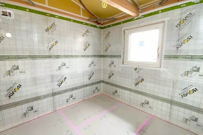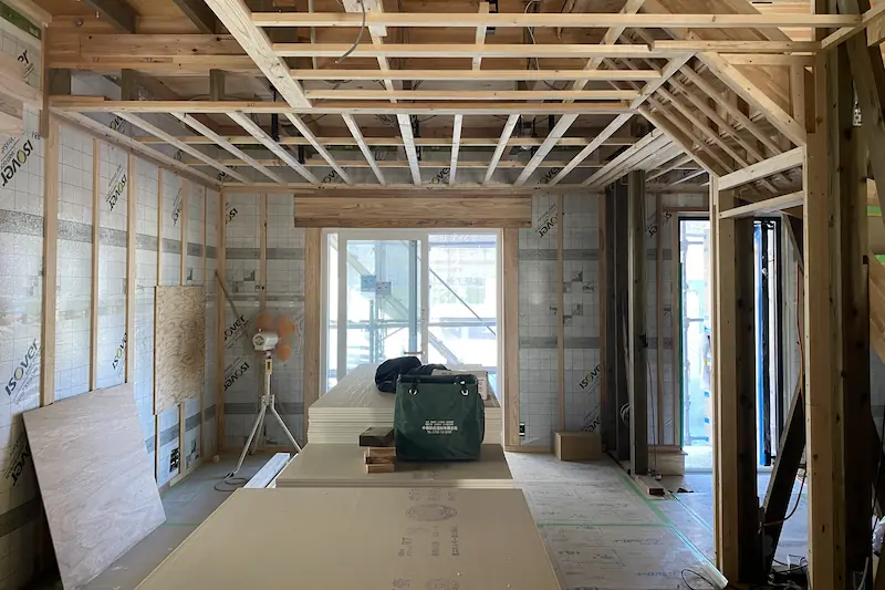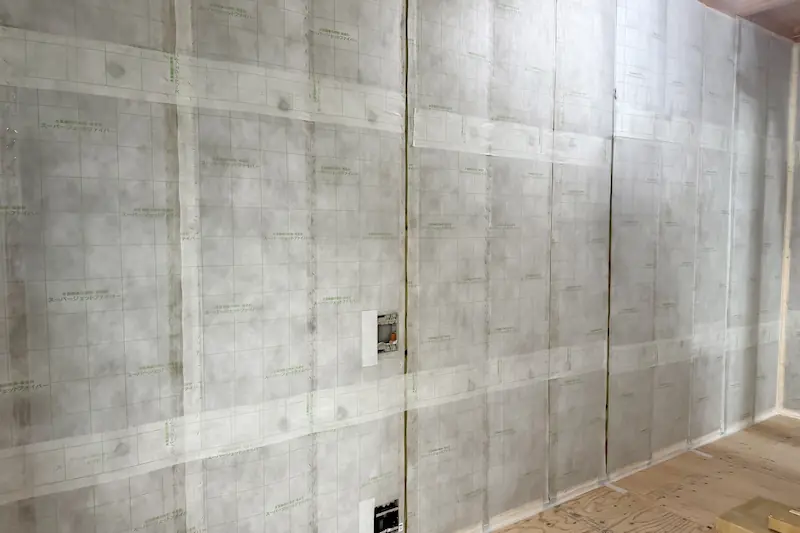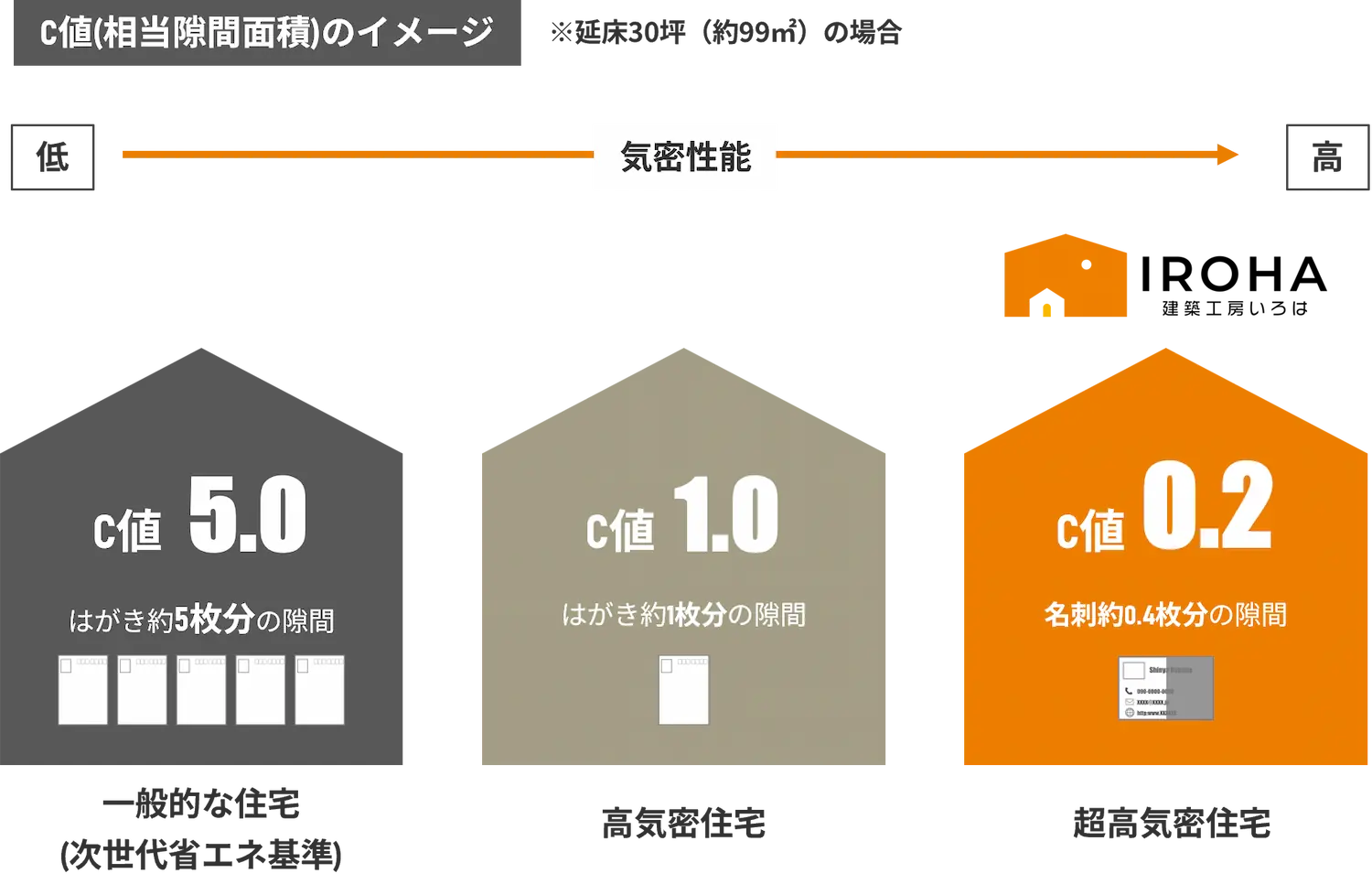 気密性能は「C値(相当隙間面積)」で表され、数値が小さいほど住宅の隙間が少なく、気密性能が高いことを示します。建築工房いろはでは、全棟で【0.2㎠/㎡以下】という非常に高い気密性能を達成することを社内ルールとしており、この数値をクリアしない限り次の施工工程に進むことはありません。