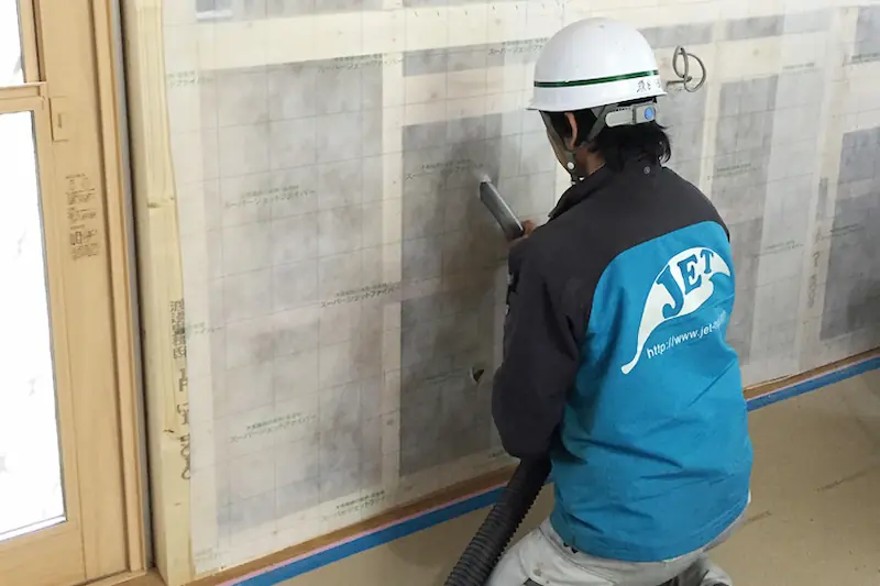 新聞紙を再利用した自然素材の断熱材で、断熱性・調湿性・防音性に優れています。隙間なく充填できるため断熱ムラが少なく、夏も冬も快適。防火・防虫性もあり、環境と人にやさしい素材です。
