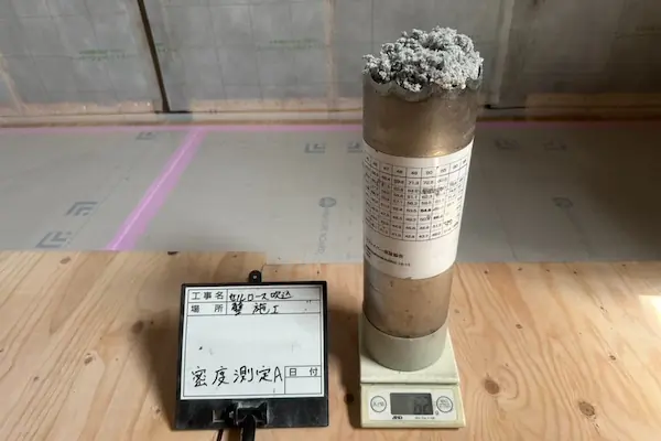 断熱材は抜き取りで充填状態を確認。不足や偏りがあれば是正し、所定性能を発揮させます。数字だけでなく、実際の住み心地に直結する検査です。