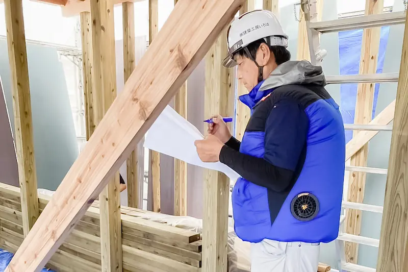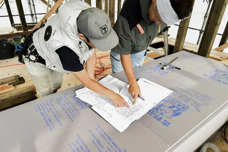 基礎や構造はもちろん、断熱や防水など見えなくなる部分も明文化し、誰が施工しても同じ品質を再現できる仕組みをつくっています。これにより、属人的なバラつきを防ぎ、どの家も高い水準で仕上げられる体制を実現しています。