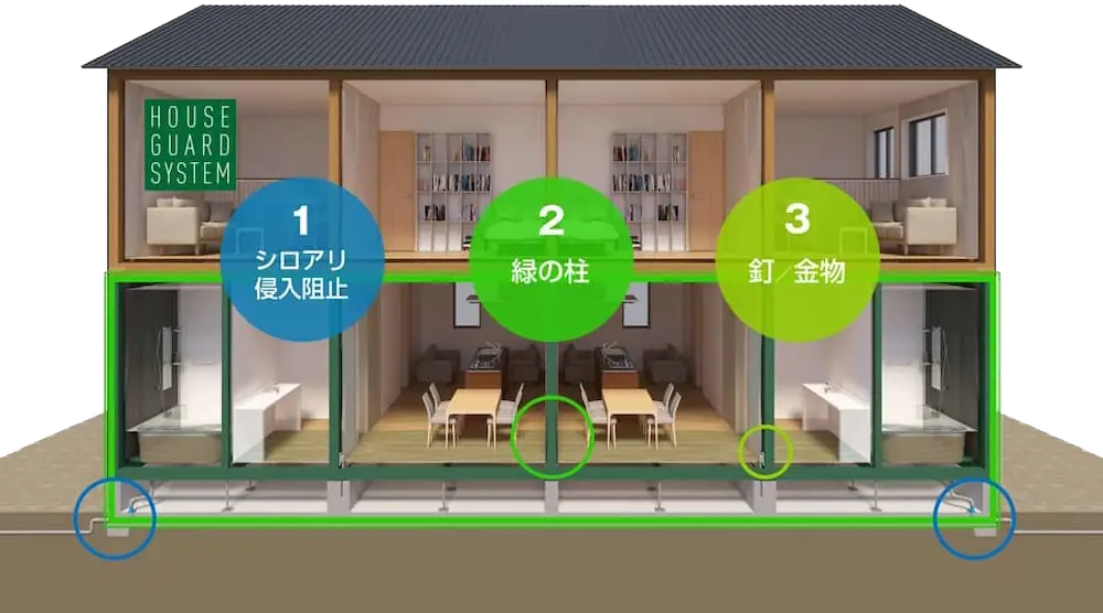 再防蟻処理を行うことで、さらに5年間の延長保証が可能。長く安心を保てる仕組みです。
