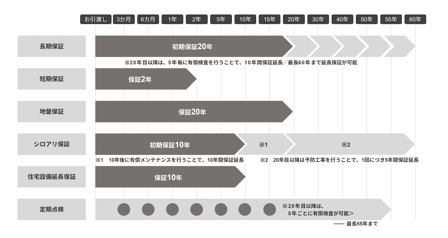 建築工房いろはでは、最長60年にわたる長期保証と、