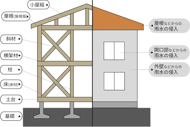 建築時に木材に直接薬剤を加圧注入し、木部全体の耐久性と防蟻性能を向上させます。
