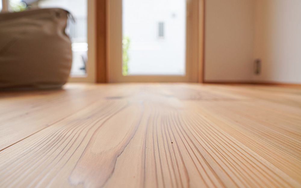 リビングの床は外壁と同じ屋久島地杉を使用。