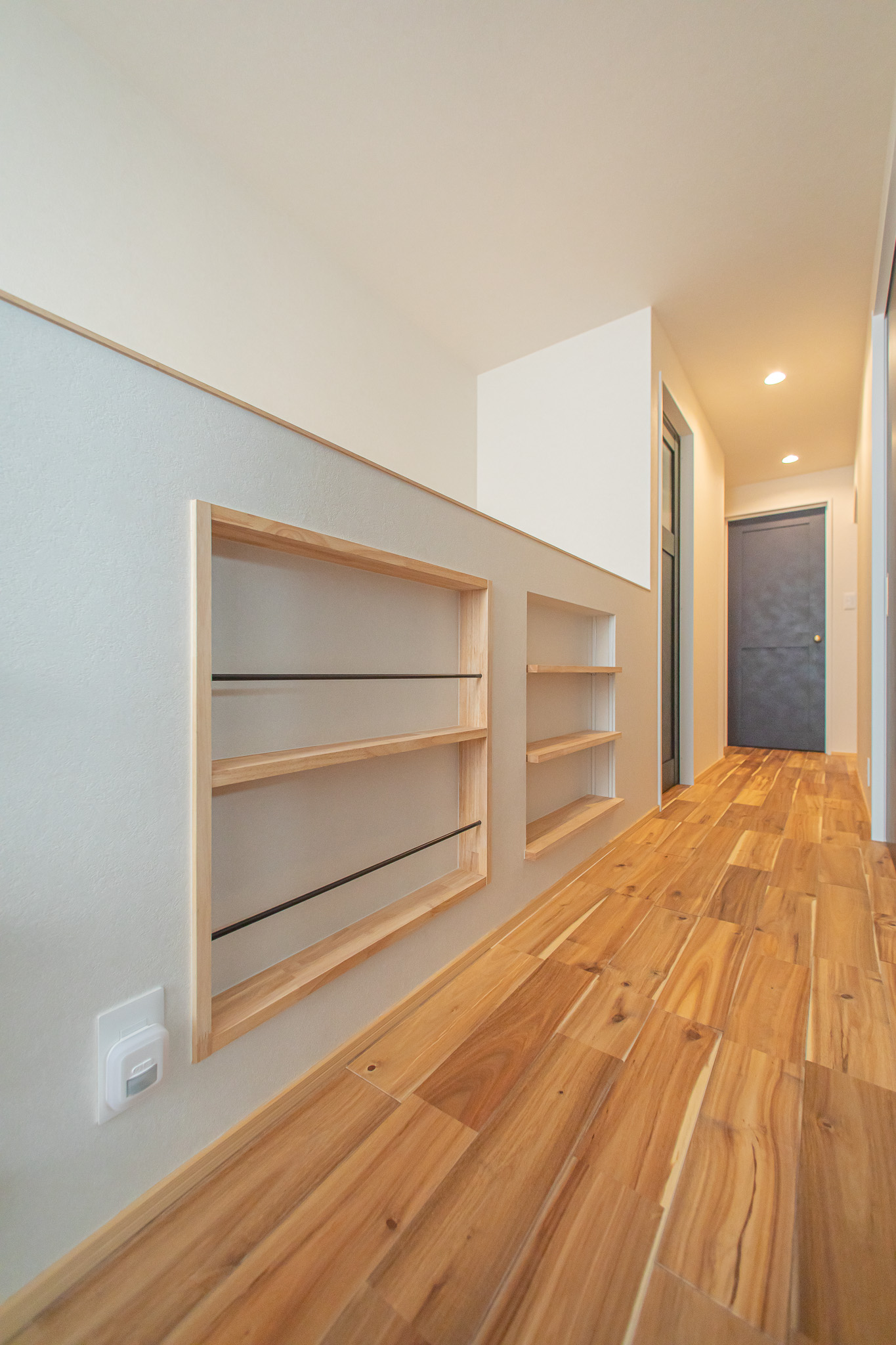 ニッチは、小物やスマートフォンを収納できるスペースとして活躍します。